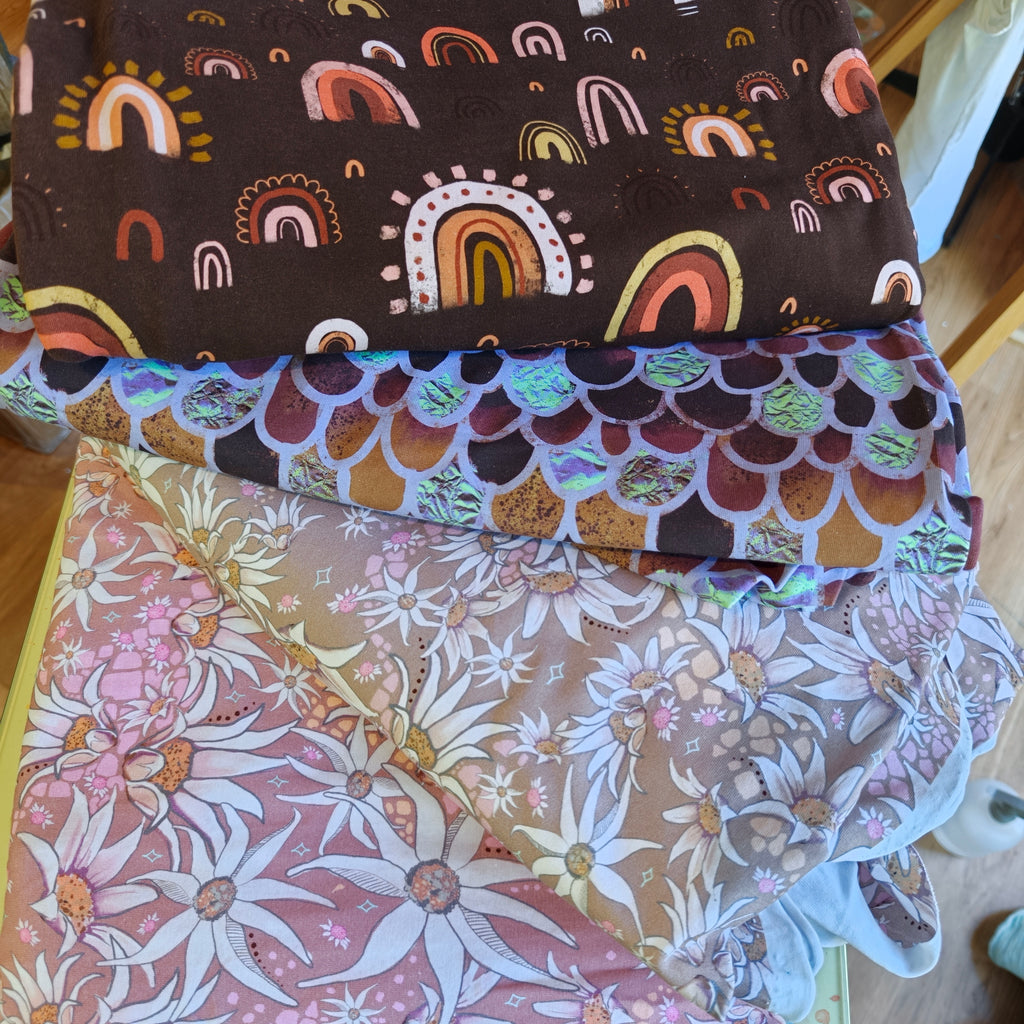 STACK 2 Feb Restock Fabric (lots of these designs all sizes) - flares/legs/tees/crops/shorts/bummies